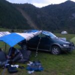 Arrivée de nuit a Motueka, une nuit a Motueka dans la tente de Constanze, dans un parc où l’on est pas supposé dormir.